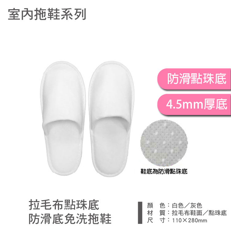 拉毛布點珠底防滑底免洗拖鞋